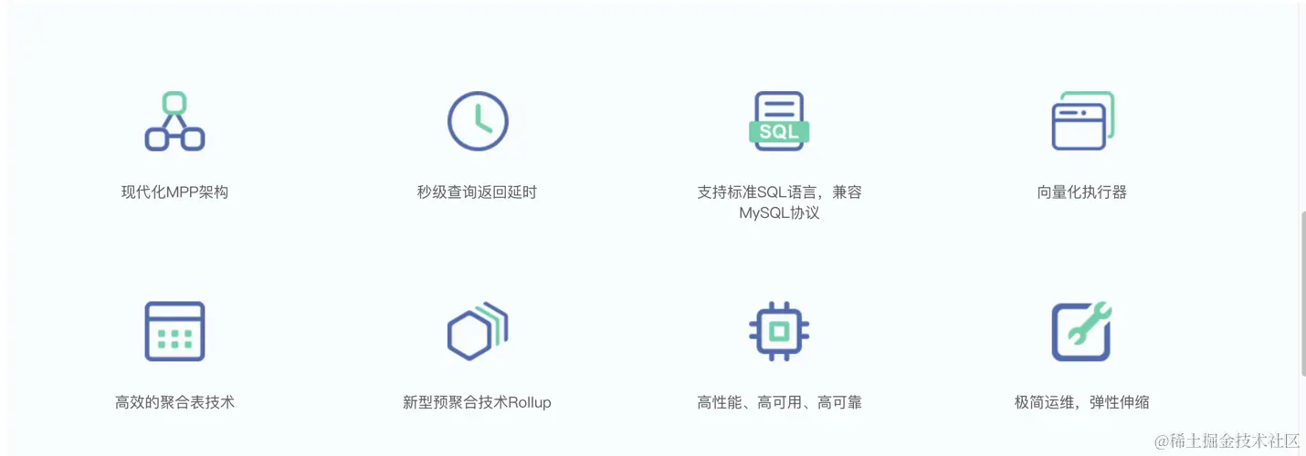 这里特性很多,但是如果没接触过大数据的同学,可能不是特别了解,但是注意这个特性,支持SQL 语言,兼容MySQL,比如:通过Mybatis 写好 sql,就可以调用查询,而且他能支持亿级数据检索响应,以前还是想分库分表呢,现在有了它可以在考虑一下它了,看分库分表有必要吗,但是这里要注意下,它是一个 OLAP 引擎与 OLTP还是有点区别,如果业务场景,新增多后期更新少,同时查询场景多,那么可以在 mysql 中保存一段时间的热点数据,来进行相关业务操作,而报表查询都走Doris