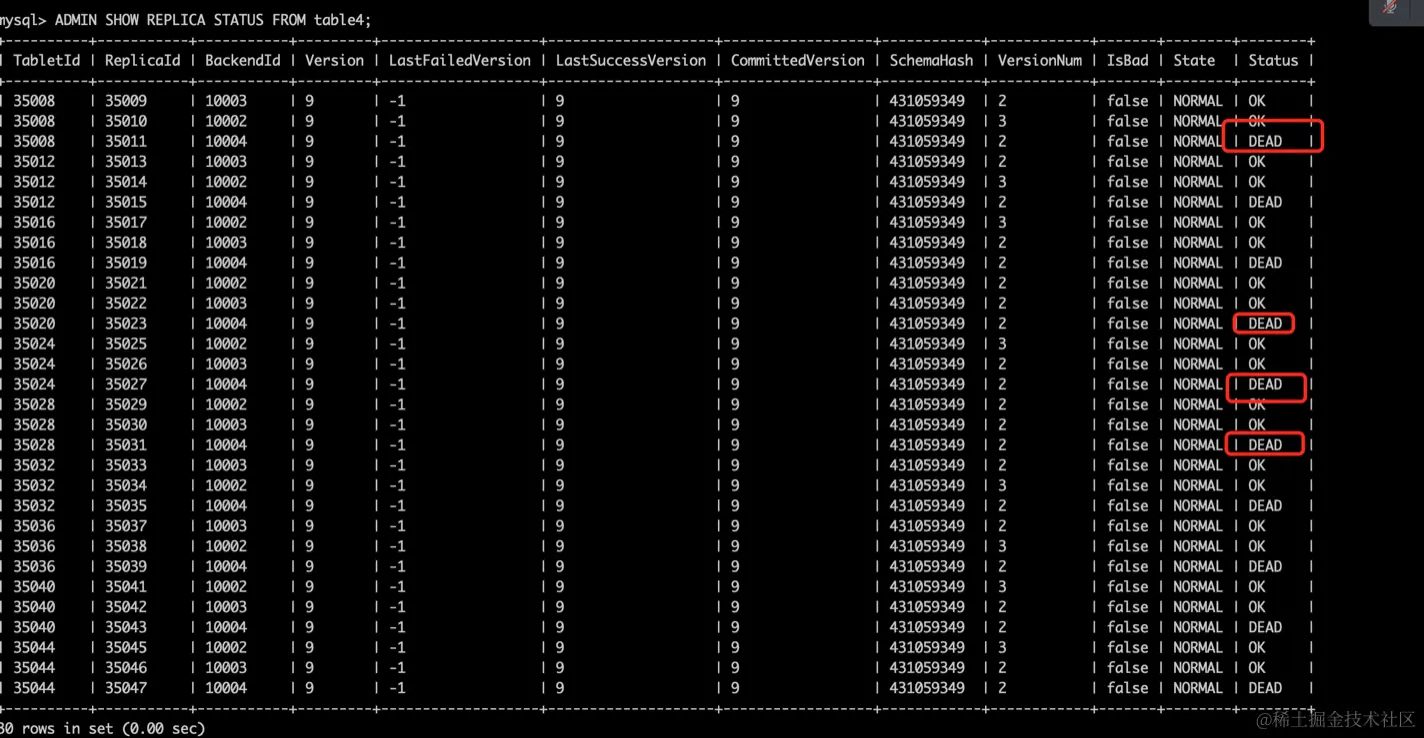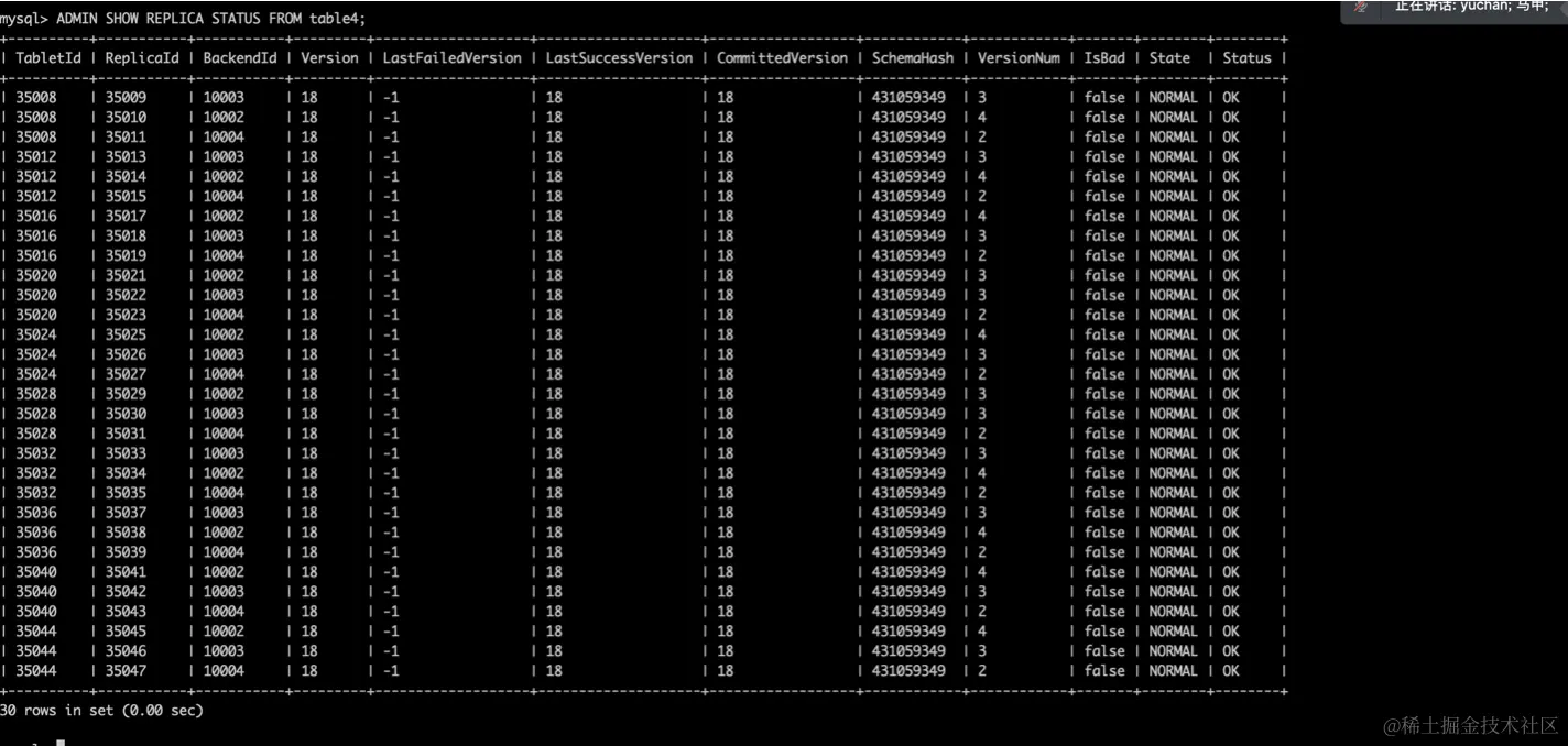 ADMIN SHOW REPLICA STATUS FROM table4;
