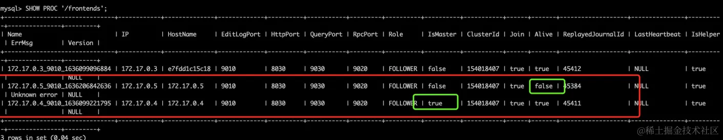 可以看到172.17.0.4成为了master,而172.17.0.5显示已经不在线了 Alive=false