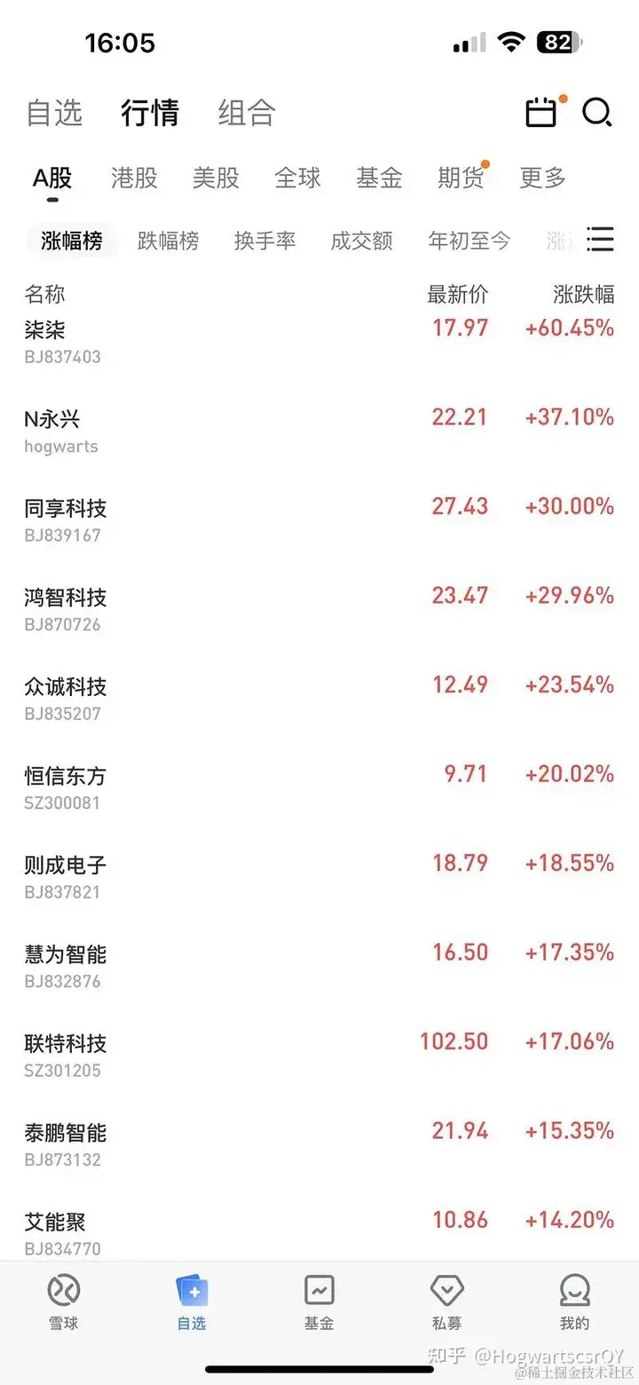 使用雪球 app 自选–行情–A 股–涨幅榜股票列表的接口数据