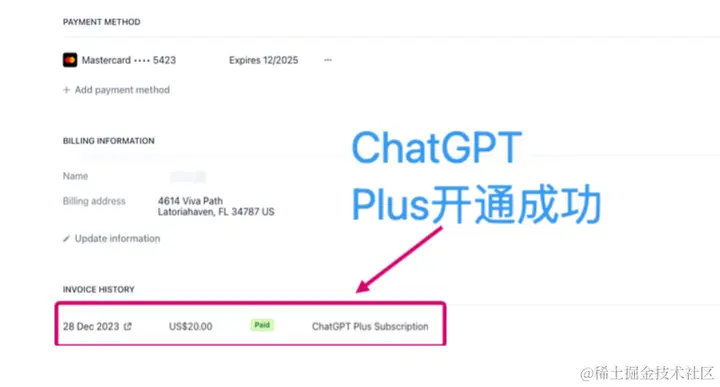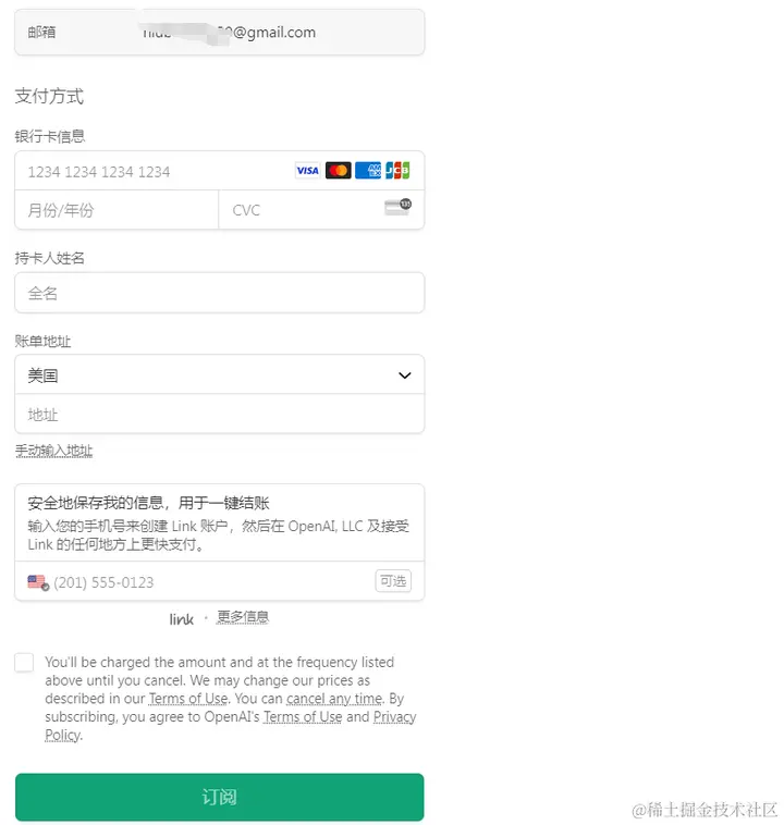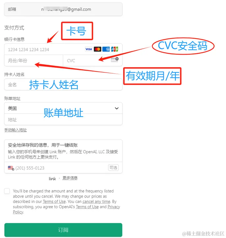 然后就剩最后一步了,把万事达卡资料填写到openai的付费界面: