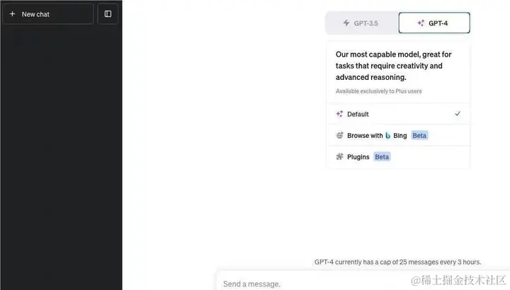 升级后的账号是这样的,可以选择GPT3.5或者GPT4。