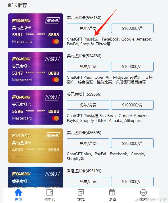 因此选择(556150)的万事达卡进行充值操作。你也可以选择后面的几种,你可以看到前几个的介绍中都支持GPT