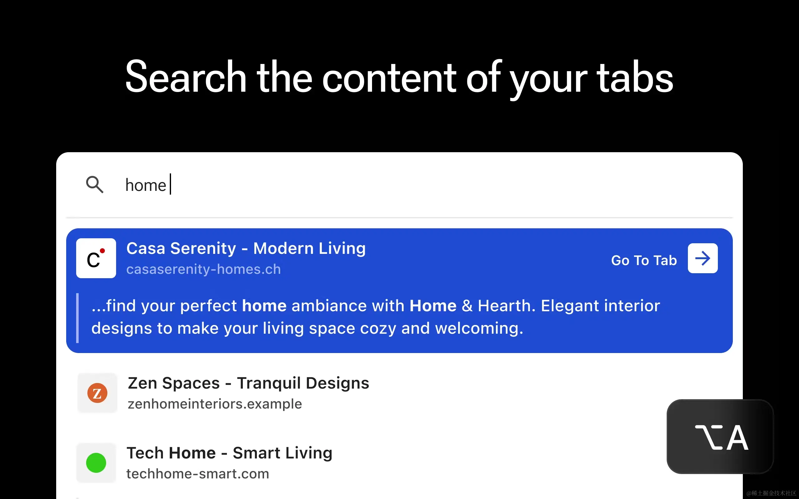 Deep Tab Search 是一个 google 浏览器标签整理工具,可以帮助你搜索所有打开的选项卡并在它们之间高效切换。它可以为你展示所有打开的标签页并进行跳转,允许在其中进行搜索,允许你直接输入关键词执行网页搜索与访问搜索历史记录,且这些操作都可以使用快捷键来完成。