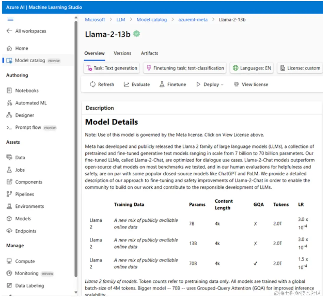 一旦我们的团队探索了当前的 LLMs 前景,并为他们的场景确定了一些好的候选模型,下一步就是根据他们的数据和工作负载进行测试。这是一个迭代的过程,通过实验和量化来完成。我们在前面的段落中提到的大多数模型(OpenAI 模型、Llama2 等开源模型和 Hugging Face 变换器)都可以在 Azure 机器学习工作室 中的目录中找到 基础模型 。