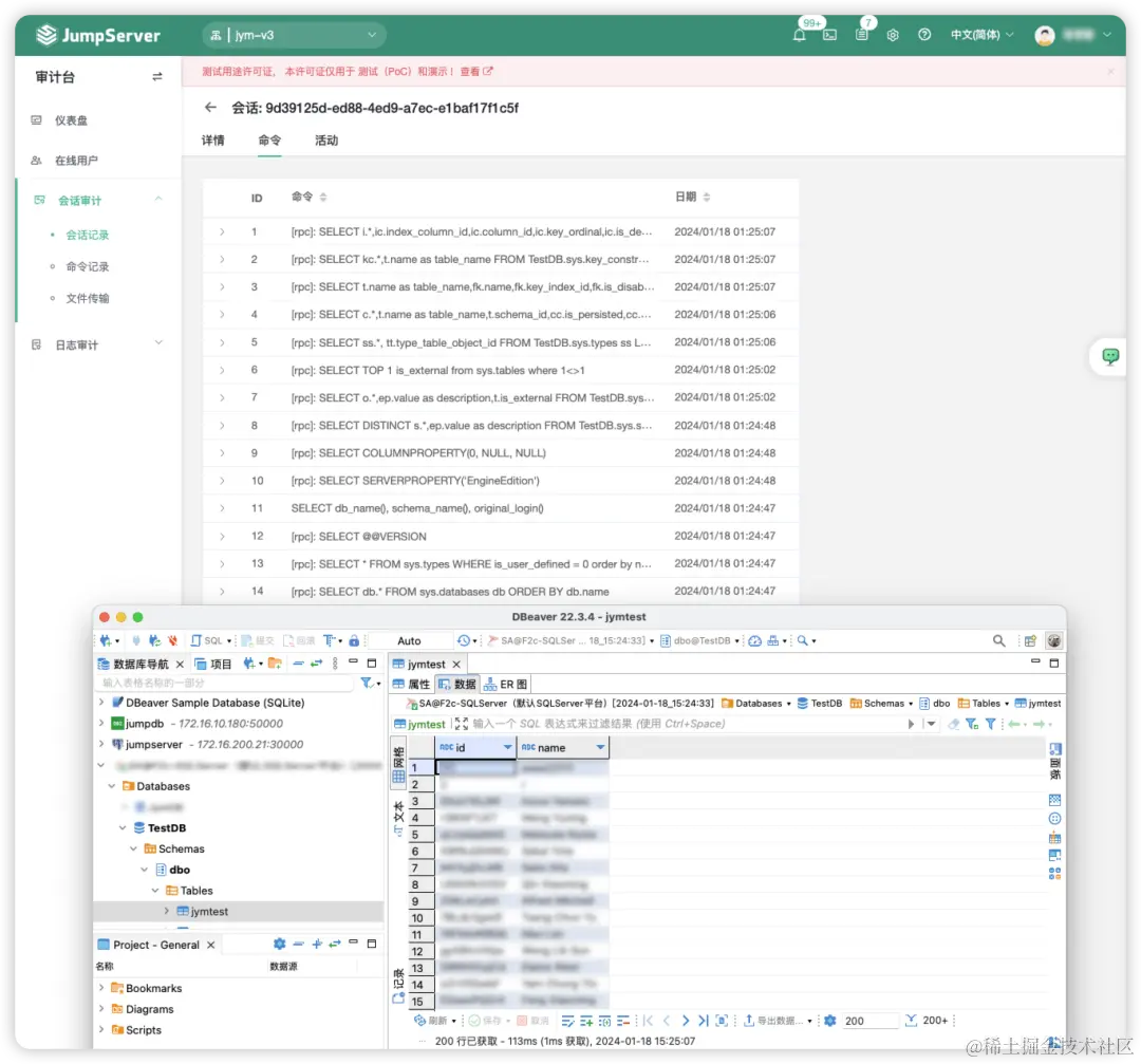在JumpServer v3.10.2 LTS版本中,针对企业版用户,SQL Server数据库连接支持命令审计,为用户连接数据库提供更多保障和选择。