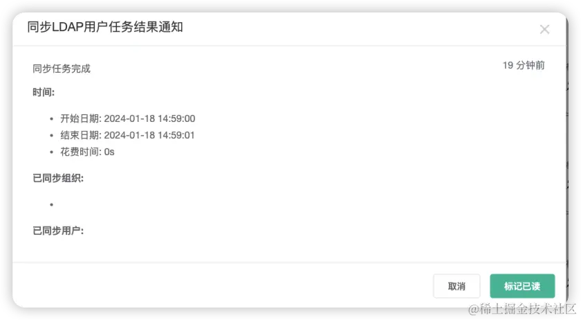 在JumpServer v3.10.2 LTS版本中,LDAP定时同步用户功能支持设置消息收件人。定时同步用户任务完成后,系统会自动发送消息通知给收件人,让用户能够更加及时地了解同步状态。