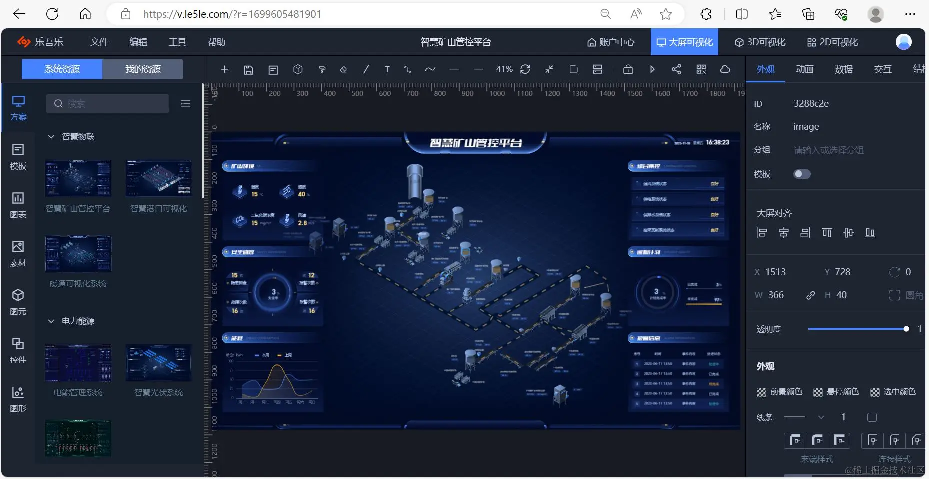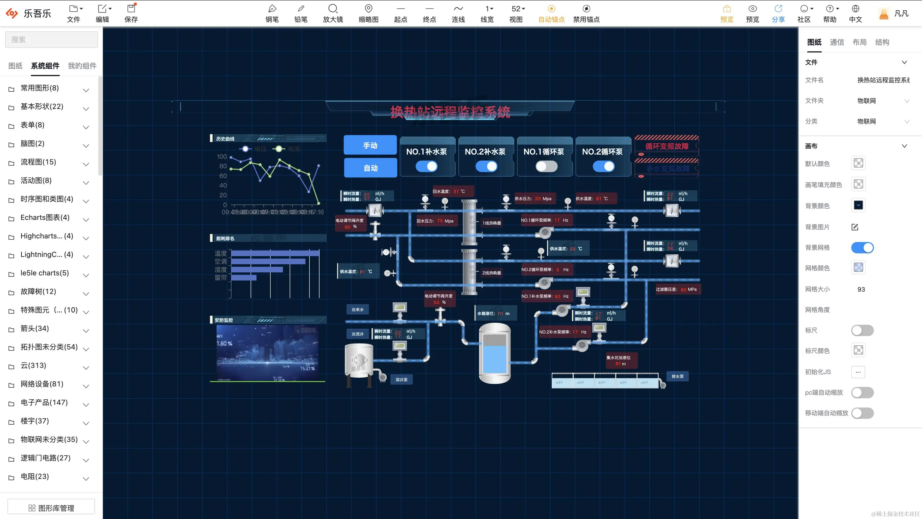 乐吾乐2D可视化组态软件,是一款功能强大的基于Web的可视化2D组态软件编辑器,具有跨平台、高效、可扩展、实时监控、动态交互、支持自动算法等特点,最大程度减少研发和运维的成本,并致力于普通业务人员0代码开发实现web组态、SCADA等场景。是拥有为电力能源、水利、物联网、工业互联网、智慧城市、智慧楼宇、智慧医疗、智慧农业、IT运维等提供解决方案的可视化平台。