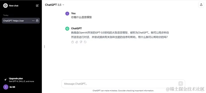 升级后的账号是这样的,可以选择GPT3.5或者GPT4。