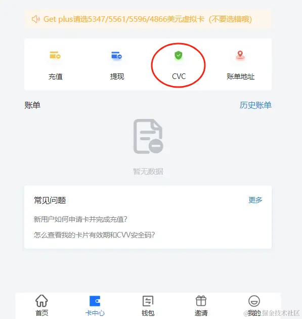这一步完成之后,在中心点击CVC,可以看到卡详细资料,有现成的免税州地址,这个信息我就不图片展示了!