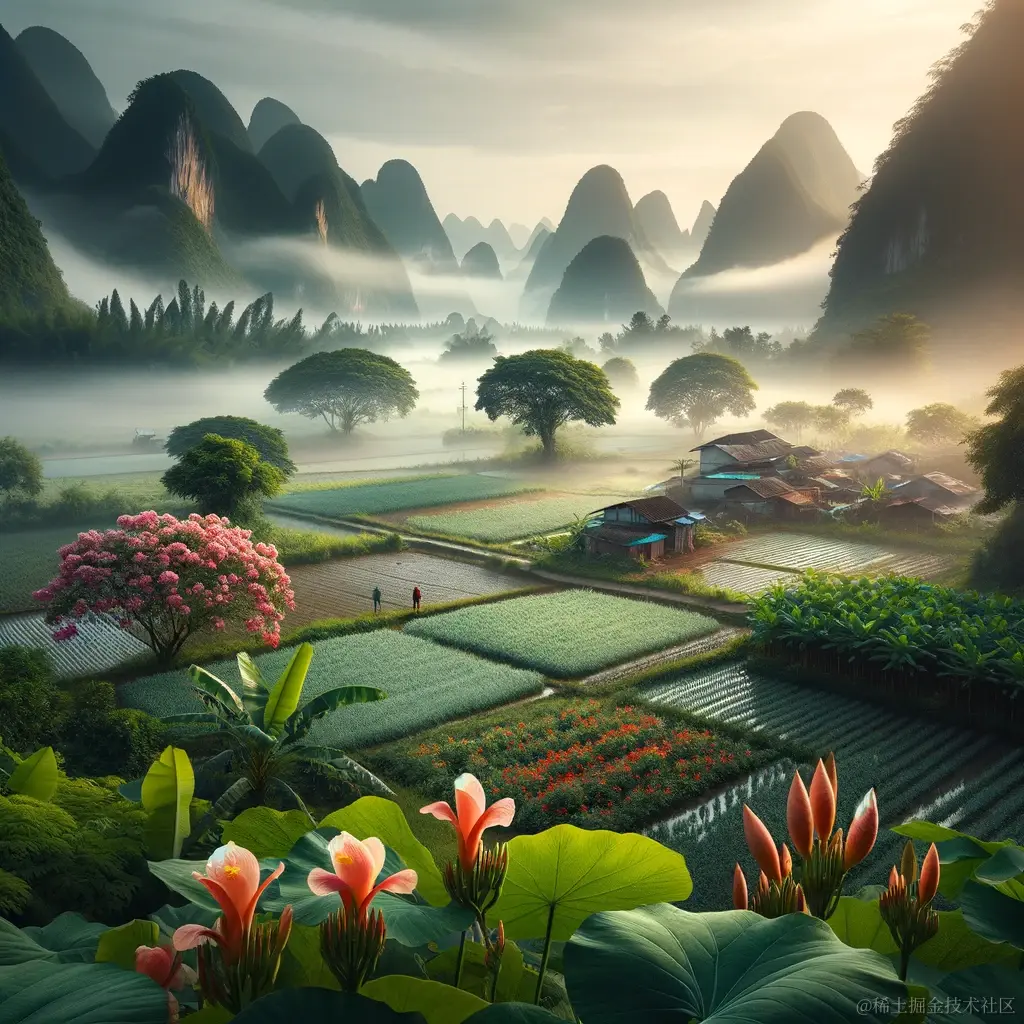 初夏的早晨,东涌村笼罩着薄薄的微雾。太阳没有出来,珠江河上吹来的暖风,带着潮湿的凉意。木棉花开过了,桃花开过了,雪豆花和各种色泽的菜花,都开过了,东涌村外的平坦的田畴,青青欲滴的软柔柔的稻苗,苍苍翠翠的丛丛蕉叶,在风中摇曳,呈现了一片生意。 陈残云《香飘四季》