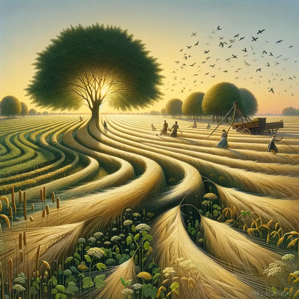 这是一年中正当夏季转折点的时节,那时节,本年的收获已经确定,人已开始考虑来年的播种,而且马上要着手刈草了;那时节,黑麦通通结了穗,虽然那穗还没有长满,还是轻飘飘的,一片浅绿色的麦浪在风中波动;那时节,绿色的燕麦,和四处散布着的一簇簇的黄色的草一道,参差不齐地伸出在播种迟了的田野上;那时节,早种的荞麦已经发芽,盖没了地面;那时节,被家畜践踏得像石头一样坚硬的休耕地已经翻耕了一半,仅仅残留下没有被翻耕过的小路;那时节,堆积在田里的干粪堆在日落时发散出和绣线菊混合的气味;在低地上河旁的草原像一片大海似地伸展看,等待着镰刀,在那草原上黑魆魆地四处堆积着被割除了的酸模草的茎秆。