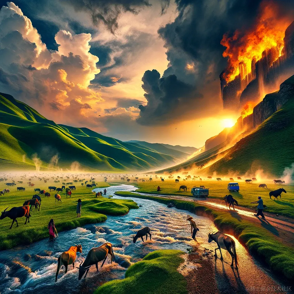 七月已经过去了,跟着来到的是“暑月”,这仿佛是自然一方面,看着塔布篱厂里的情人那样热烈,特为和他们斗胜争强似的。这块地方上的空气,在春天和初夏的时候,本来非常清新,现在却变得停滞不动,使人困懒了。浓厚的气息老压在他们上面;正午的时候,一片大地好像都昏昏晕去。草原上较高的山坡,都叫跟埃塞俄比亚那样一样地灼热的太阳晒成黄色,不过这里水声淙淙的地方,却还有鲜明青绿的草色。