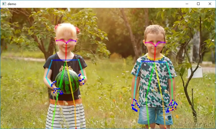 PyTorch-OpenPose 是一个基于 PyTorch 的开源库,它实现了 OpenPose 的功能,可以进行人的面部表情、躯干和四肢甚至手指的跟踪。它不仅适用于单人也适用于多人,同时具有较好的鲁棒性。要运行 PyTorch-OpenPose,需要安装支持 CUDA 的 PyTorch,以下例子有使用作者提供的预训练模型,通过拆分视频帧,绘制多人物动作线条保存图片,最后将图片合成为视频。