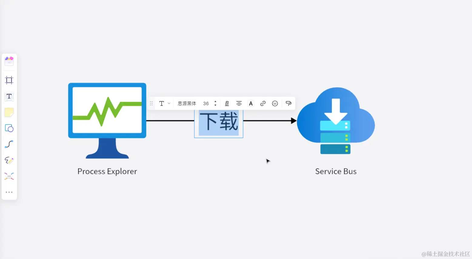 如果想要在连接线上添加文本,可以直接双击连接线,boardmix会自动在连接线中间插入文本框,直接输入文本内容即可。对于输入的文本,我们可以调整其样式,诸如:字体、字号大小、粗细、对齐方式、文本颜色、文本背景色等等。