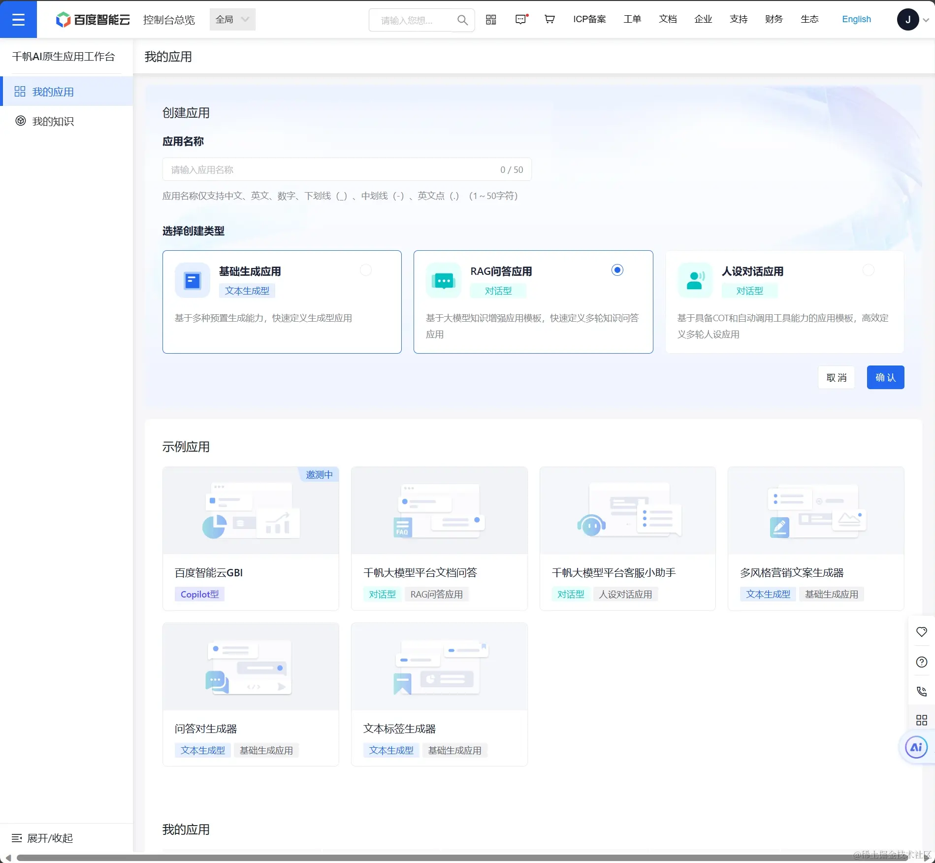 输入应用名称“传记问答”,开始创建