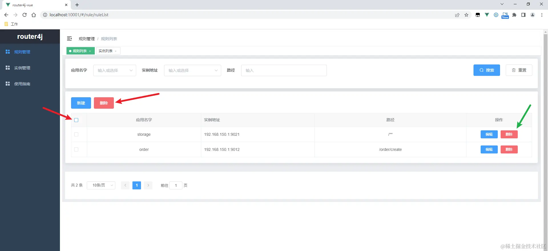 支持单个删除(绿色箭头所指)和批量删除(红色箭头所指)。