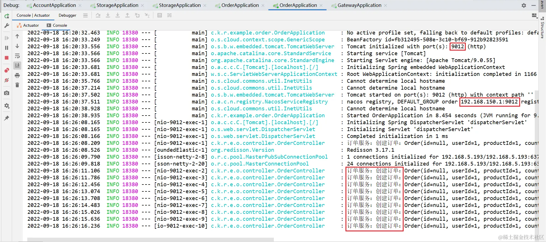 order:(全部都请求到了指定的实例192.168.150.1:9012)