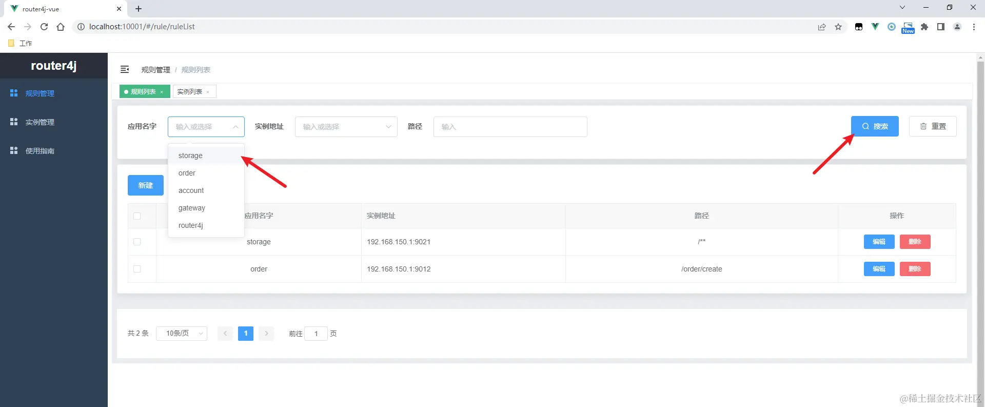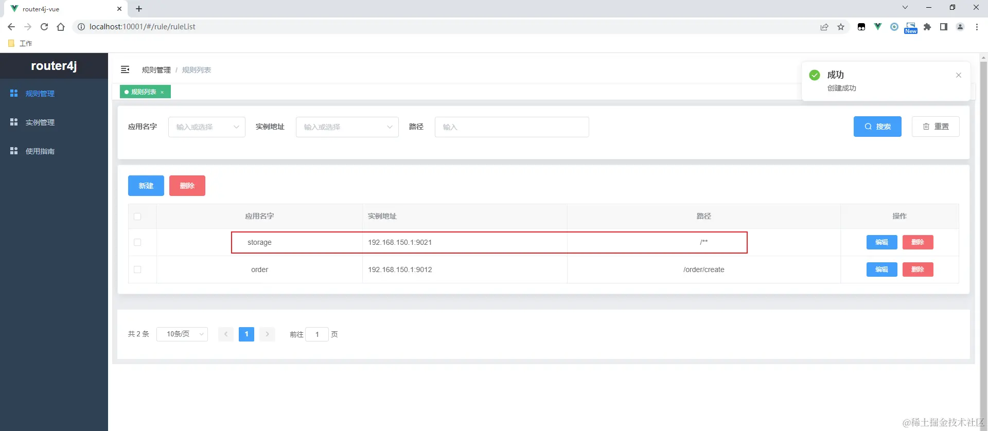 在“规则管理”中配置路径与实例的绑定: