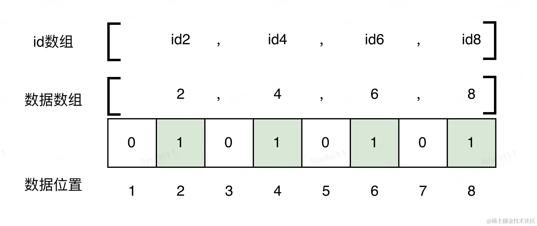 下边是一个简单示意图,假设我有8个id,id1id8,对应的offset编号为18。