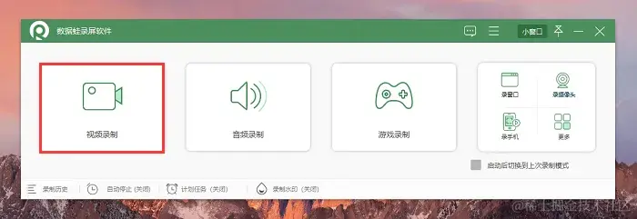 步骤1:打开提前安装在电脑上的数据蛙录屏软件,可以看见多种录制模式(音频录制、录摄像头、录手机等),我们选择视频录制。
