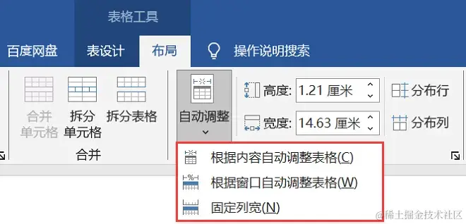在对表格进行操作时,表格的自动调整功能或许也能完成表格跨页,在进行自动调整时可根据个人喜好进行选择。