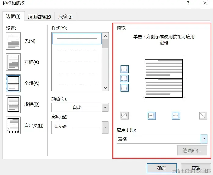 步骤3:调整【边框和底纹】中的边框宽度至合适大小,点击 【确定】,完成设置。