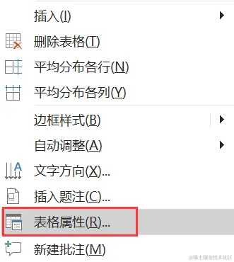 步骤1:选中表格,点击鼠标右键,选择【表格属性】 ;