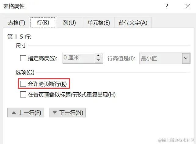 步骤3:取消勾选 【允许跨页断行】 ;
