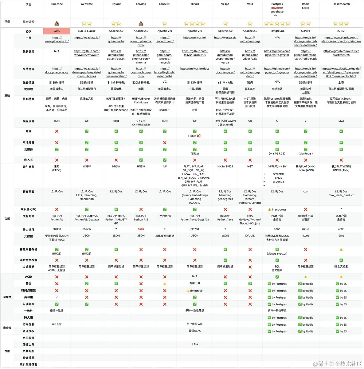 👀 向量数据库哪家强?我做了一张全维度的详细对比图