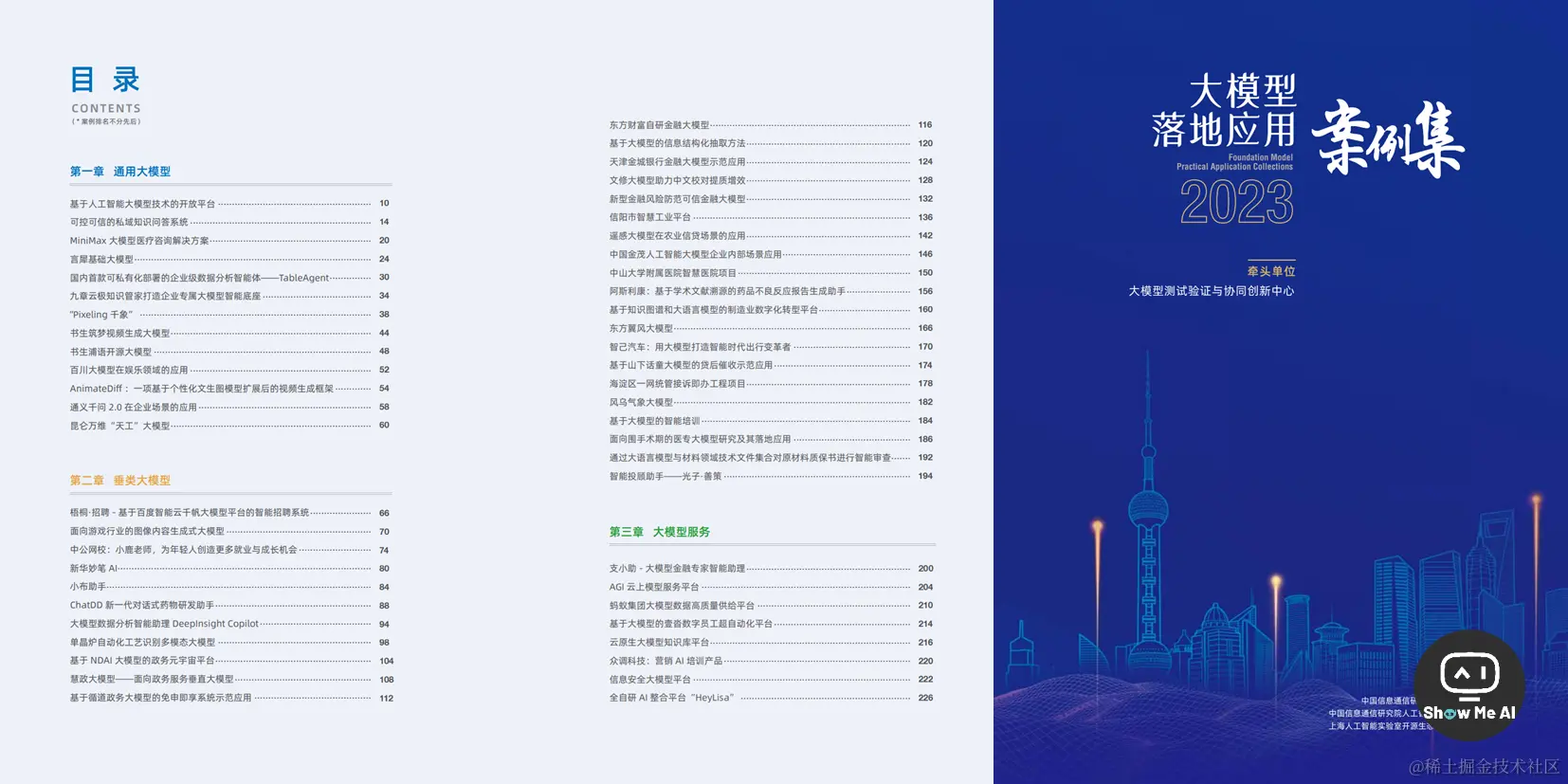 这是中国信息通信研究院牵头制作的大模型落地应用的案例集,按照通用大模型、垂直大模型、大模型服务这三类,整理了 2023年比较知名的国产大模型。