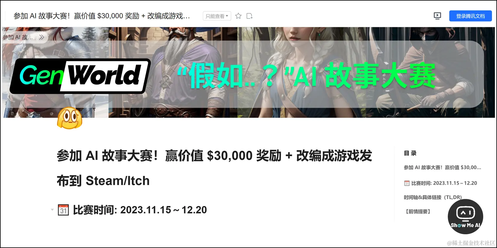 GenWorld 联合 HuggingFace、Minimax、真格基金等海外内外知名 AI 组织,举办了第二届AI小说创作比赛——「假如…? AI 故事大赛」。