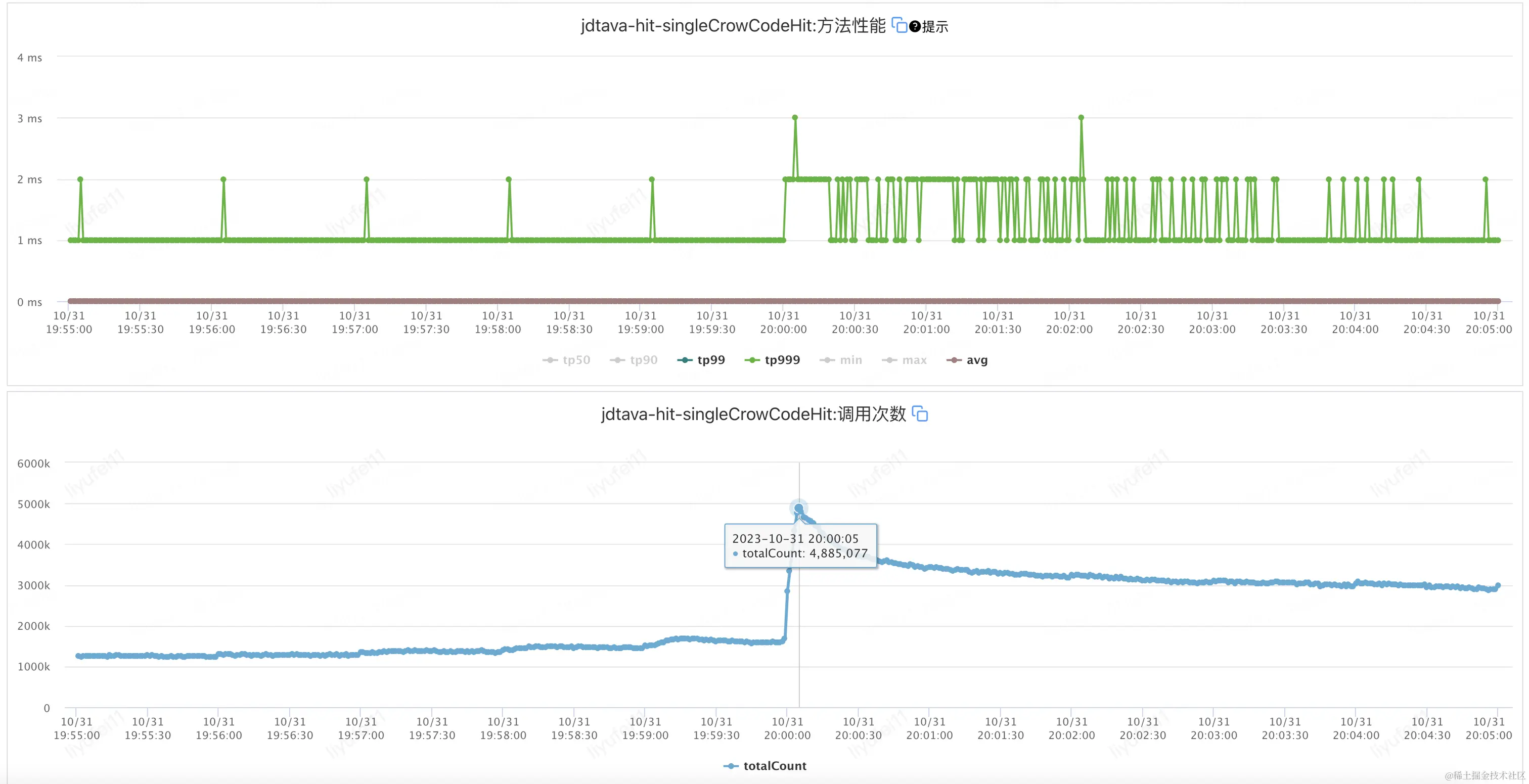 上述方案上线后,可以看到非常明显的提升,接口整体TP999耗时从40ms下降到25ms左右 ,如下图: