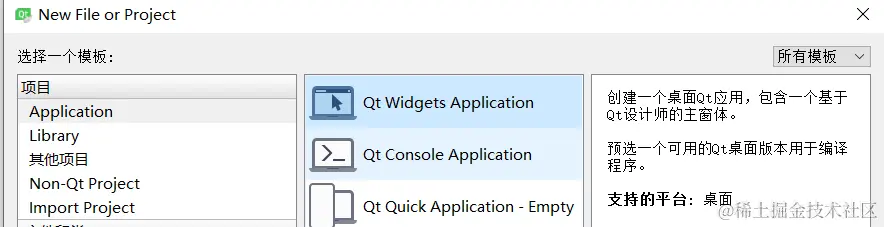 首先新建一个Qt Widgets 工程。我这里是在Windows下开发的用的MSVC2019 32bit。