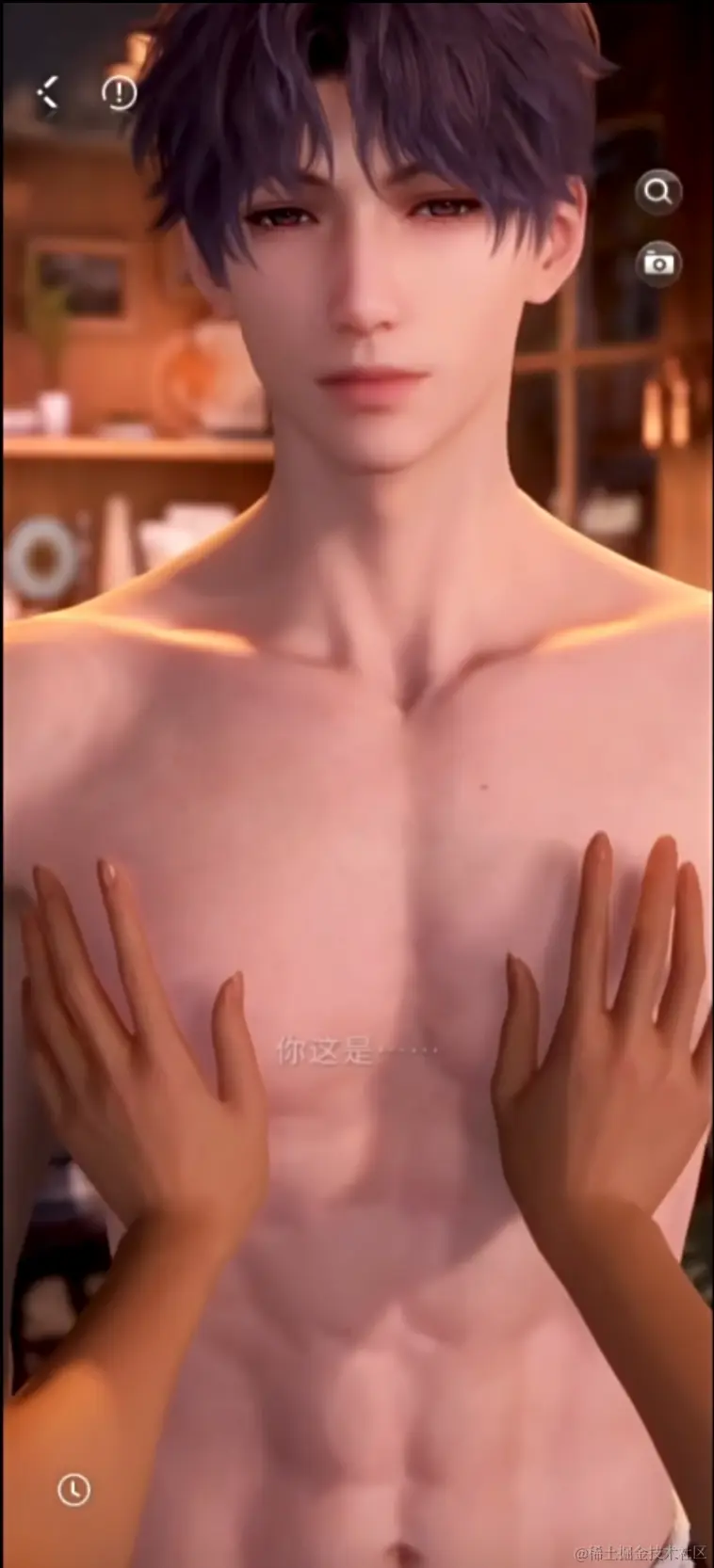 而恋与深空显然深谙色气的营销威力,不仅完美复刻代号鸢出圈胸肌照,还贡献了诸如洗澡卡一类的上衣消失、裤子消失的色气剧情。
