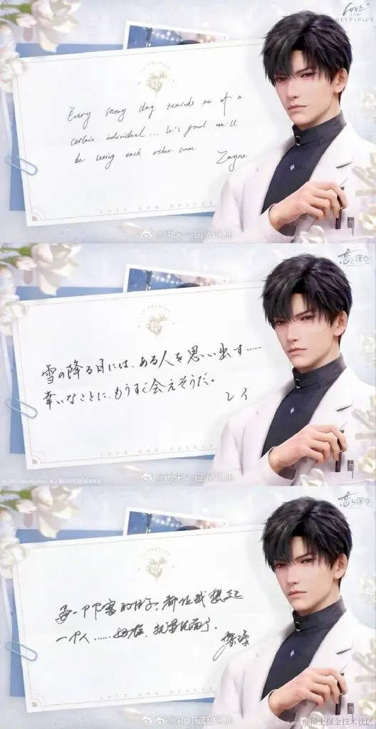 抽象的字体、奇特的联想能力,让恋与深空迎来了自己的第一个出圈名梗“曹操吃面”。顺带一提,日服、和国际服的男主手写信长这样。看完之后,作为国服玩家的感觉就是丢脸、非常丢脸……