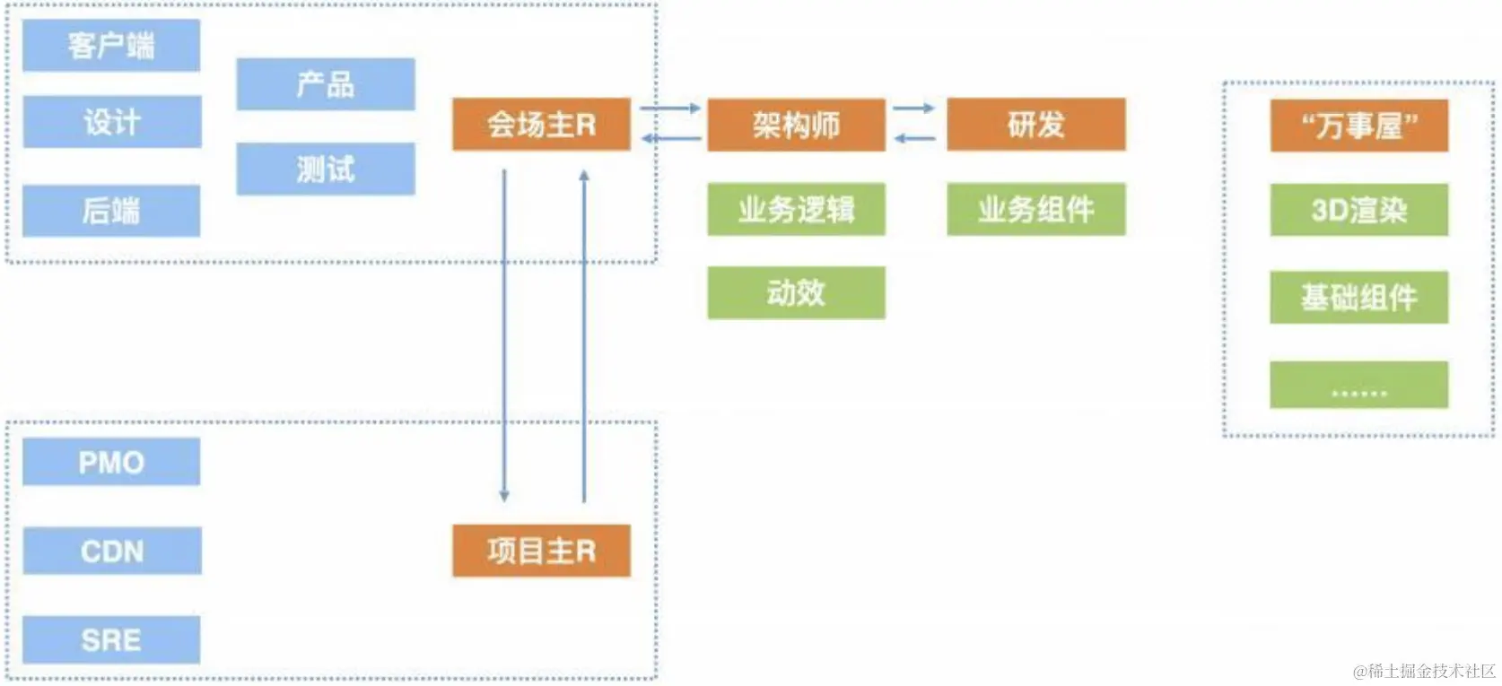 考虑本次需求的复杂性和规模,他们将职责分工进一步细化,设计出了如图示的分工图: