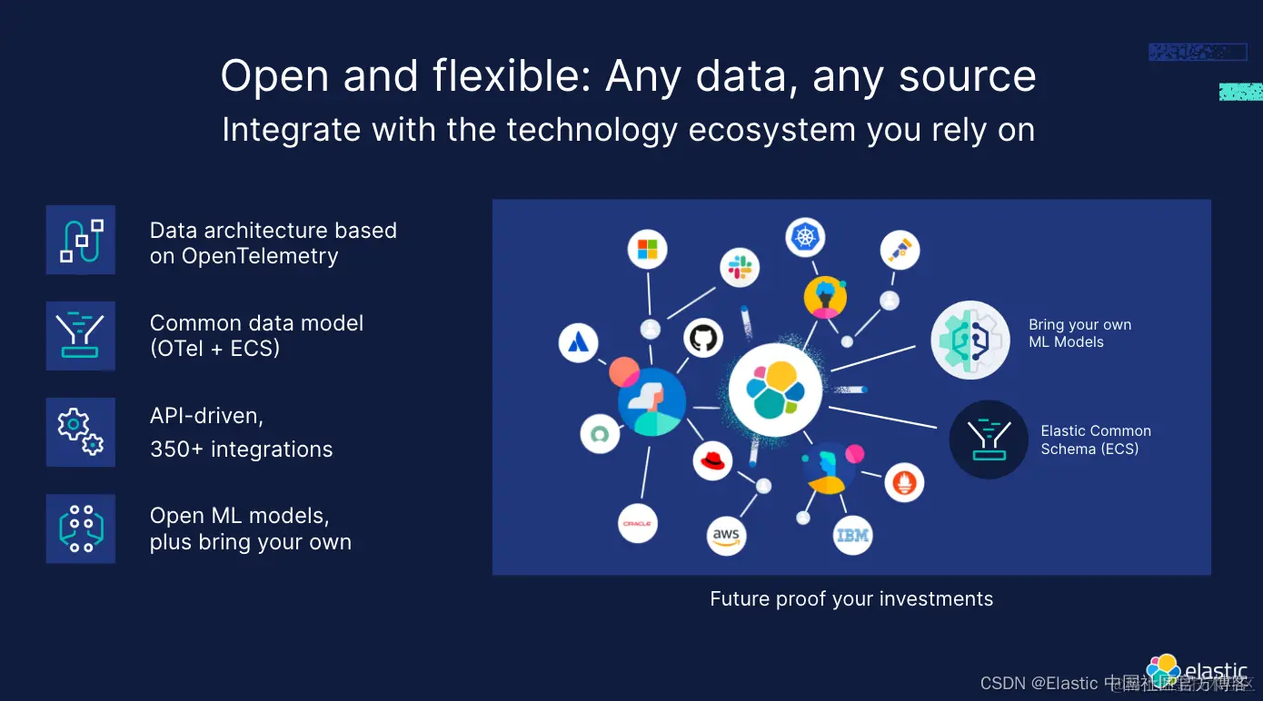 开放、透明和协作是我们一切工作的核心。 你可以免费开始使用,甚至可以免费构建自我管理的完整解决方案。 (你知道吗,Elastic 的免费版本已被下载超过 36 亿次!?)Elastic 是一个 API 优先的解决方案,支持开放标准和数据转换,这意味着我们可以与你一起扩展并适应不断变化的策略。