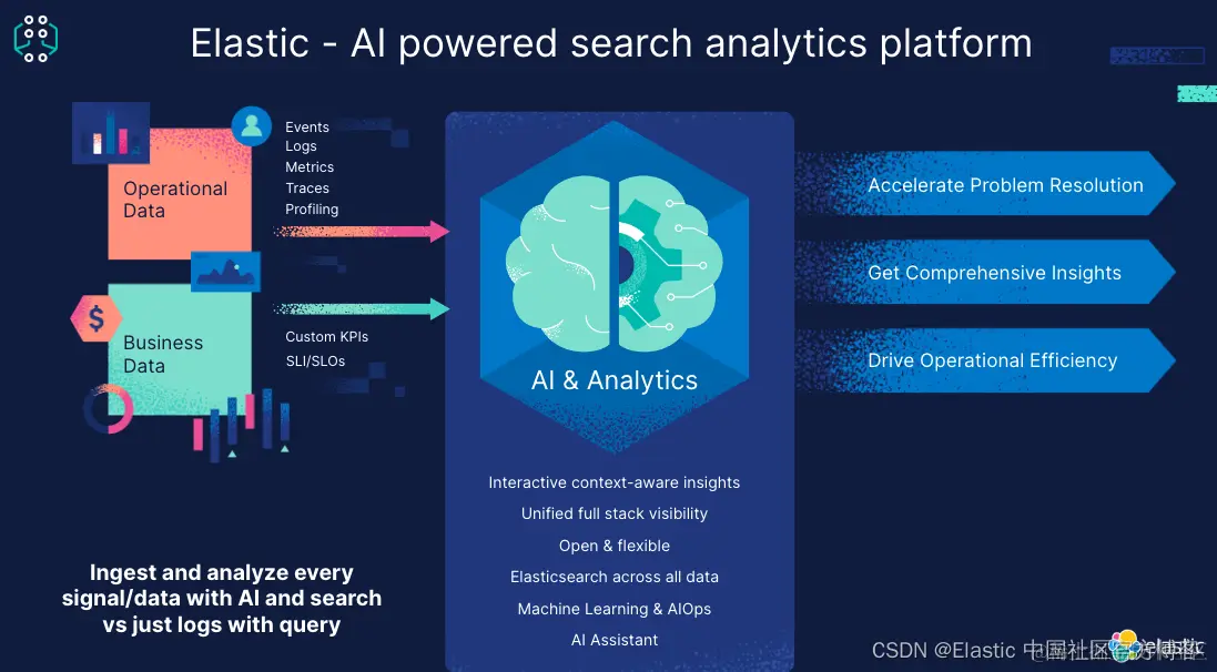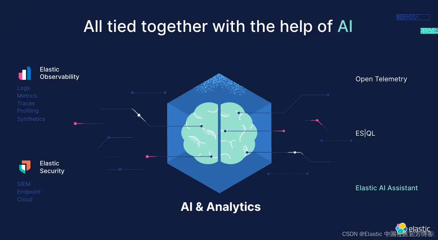 Elastic 是一个搜索分析平台,允许使用生成式 AI 大规模摄取、索引和分析任何数据(日志、指标、跟踪、安全事件等)。