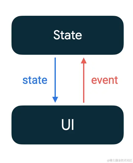 使用单向数据流的应用的界面更新循环如下所示: