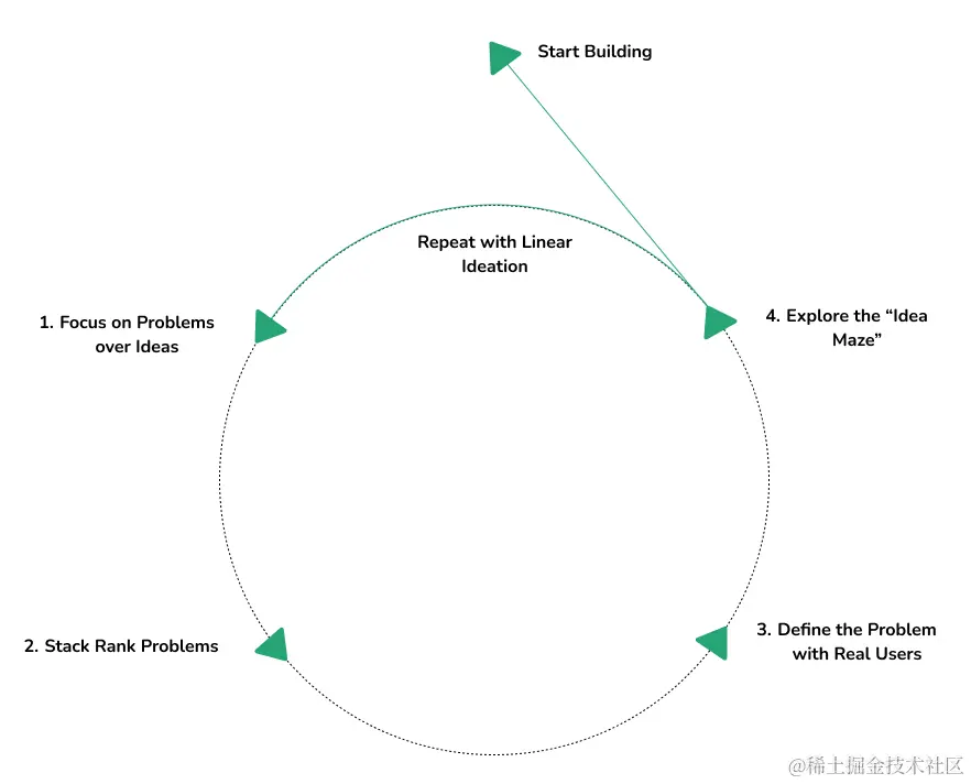 第一步是完全忘记创业的想法。只思考"想法"会让人感觉万无一失,你可以想出解决问题的办法,或者想出解决根本不存在的问题的办法。