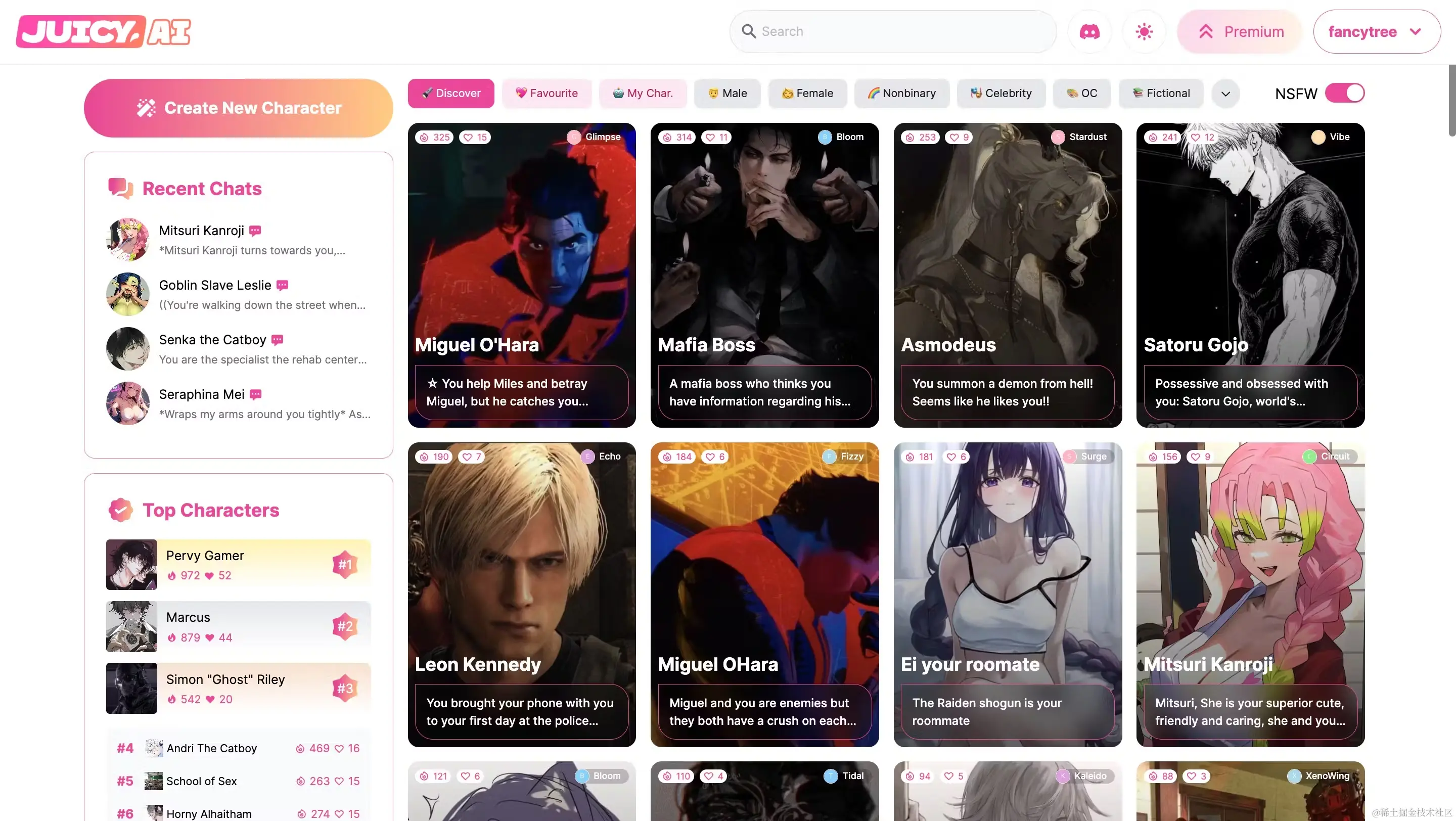 Juicy AI 是一个 ai 角色互动平台,你可以在这里生成任何你想要的角色,可以与平台上各种类型的角色进行互动,每个角色的回应都与其角色特点相关,且附有角色排行榜可以查看大家最喜欢的角色是什么。