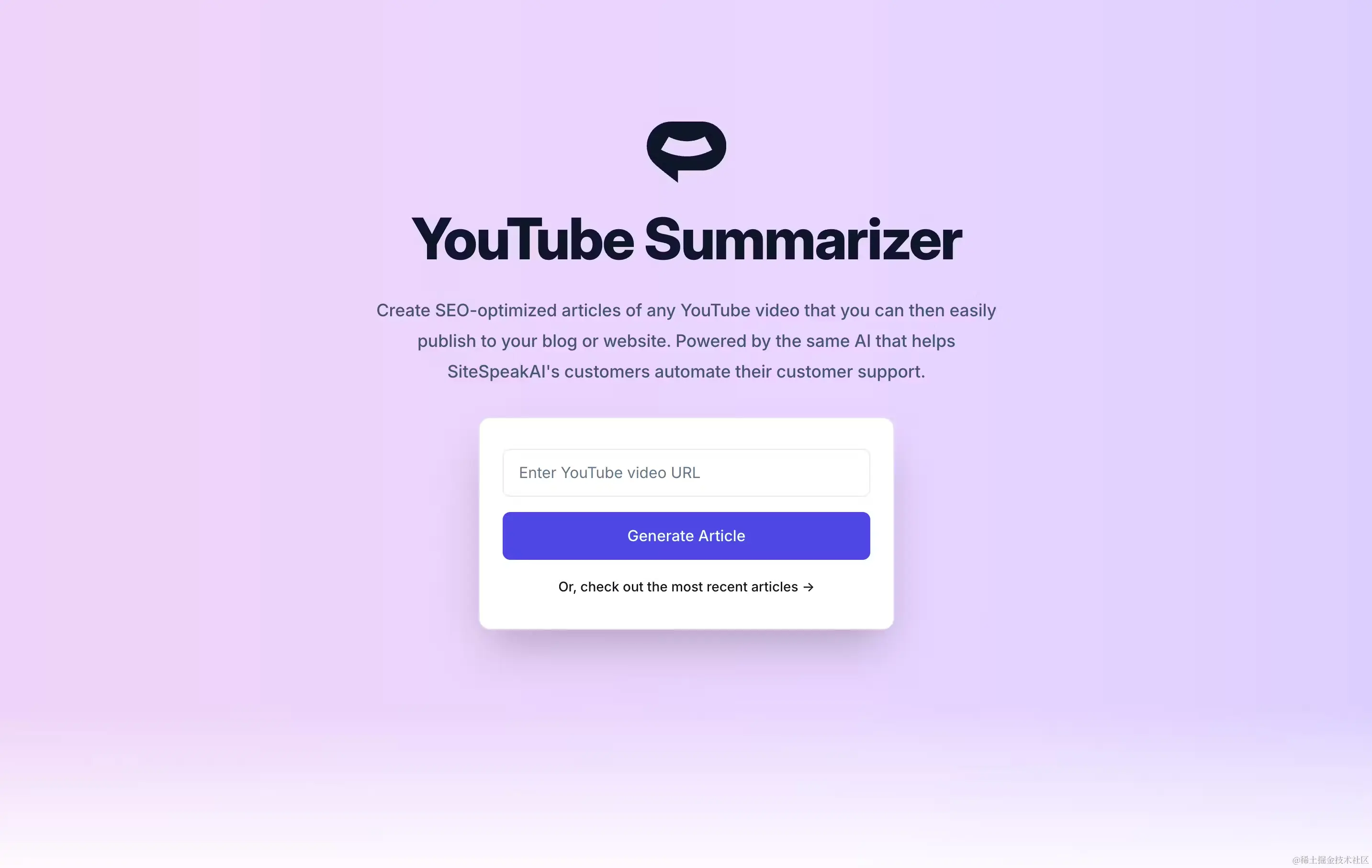 一个 YouTube 视频的摘要生成器,可以解析 YouTube 视频并根据视频内容生成一篇文章,你可以轻松地将其发布到你的博客或者网站上。