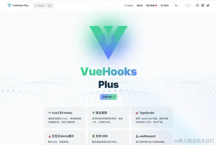 vue-hooks-plus 是一个 Vue3 Hooks 库,我看过这个库的源码,感觉学到了挺多东西,这个库的特点如下: