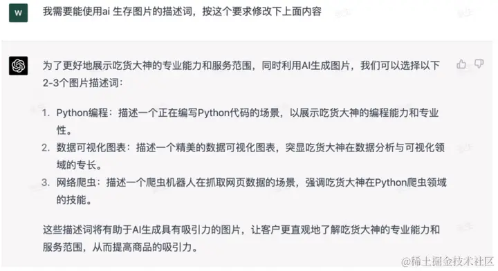 说得太笼统,告诉他我们为什么要它说图片的描述,让他修改下。