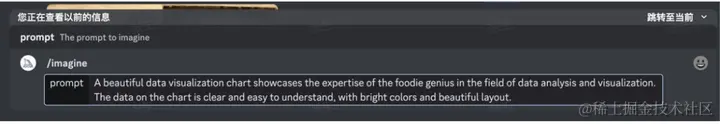 进入到Midjourney后,在聊天框输入/imagine就会出现一个选项,选择它。