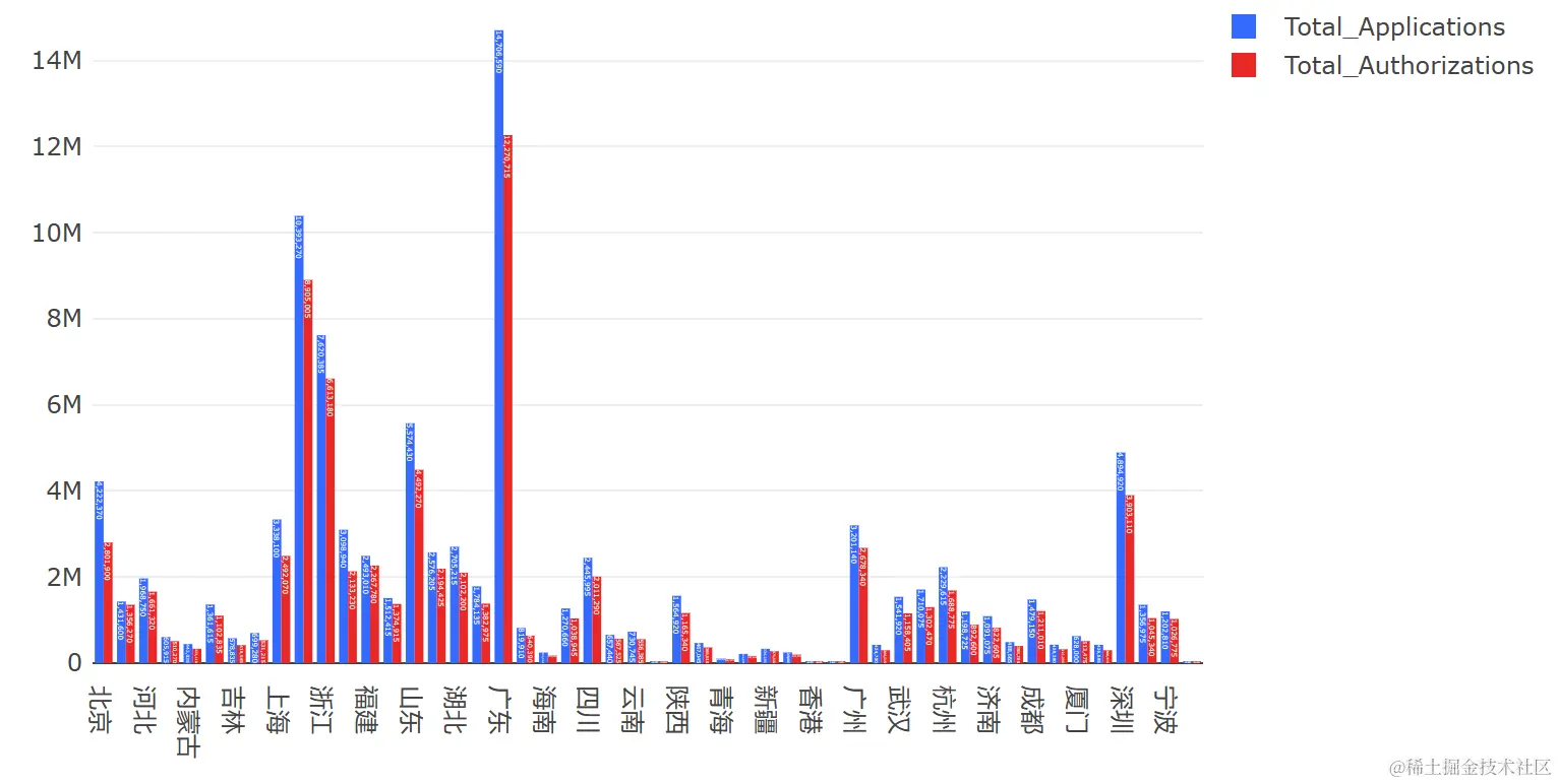从国家知识产权局年鉴,我们可获取专利相关数据。各年份、地区、专利类型、申请人类型的专利申请数、授权数是关键指标,该指标直接从网站下载后整理得到。