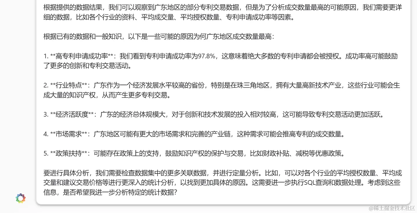 我们以“分析广东地区成交数据量最高可能得原因”提问