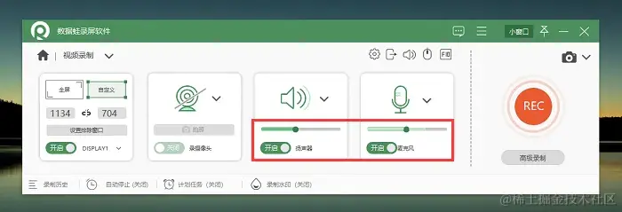 第2步:在视频录制功能中,如果仅需要录制系统声音,可以点击开启 “扬声器” ,然后把 “麦克风” 关闭。