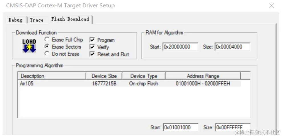 1)既然需要运行 ROM 代码,那么我是不是可以把官方 AIR105.FLM 中的算法代码(没有源码)提取出来,然后参考 1.2 中的形式实现来运行?(灵感来自 “利用MDK的FLM文件生成通用flash驱动”)